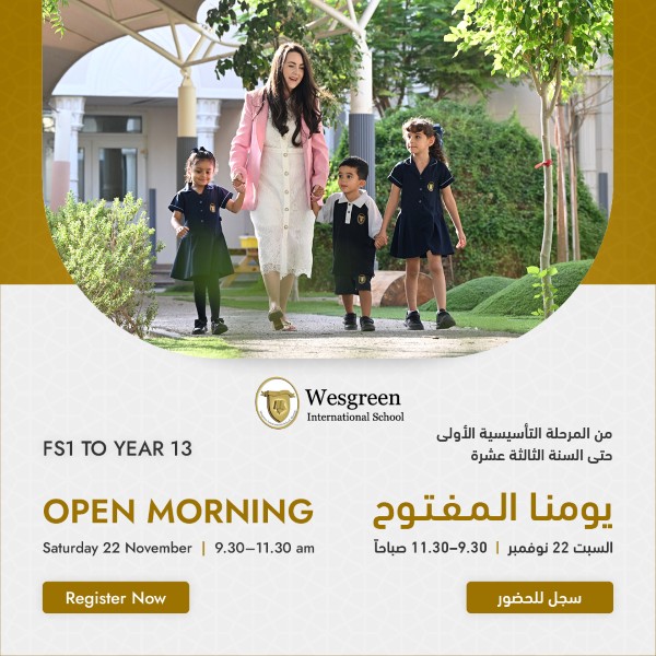 Join us for an exciting Open Day at GEMS Wesgreen International School – Sharjah! Experience a world-class British curriculum in a school with over 30 years of educational excellence. Meet our passionate educators, explore our dynamic learning spaces, and discover how we nurture confident, future-ready learners from FS1 to Year 13.